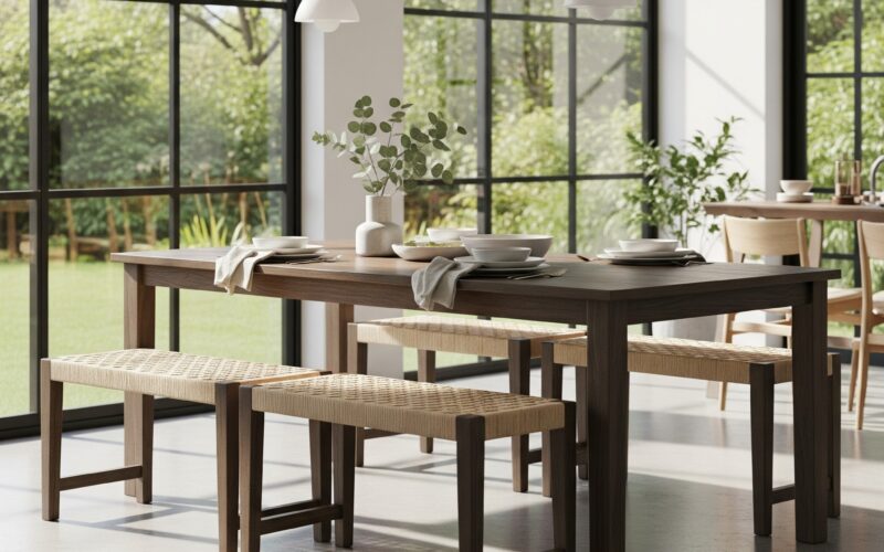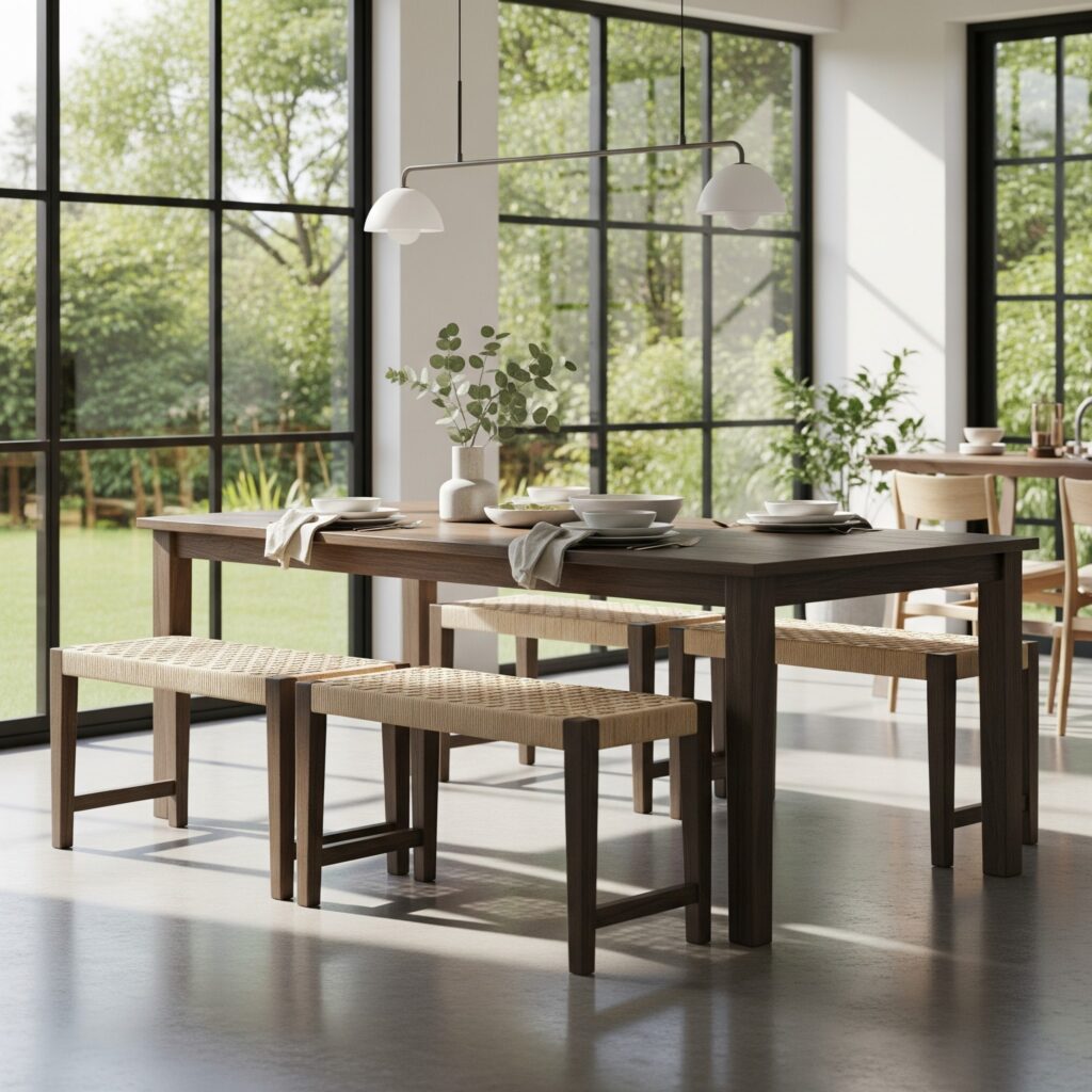 Eine Tischsitzbank vereint Sitzgelegenheit und Tisch in einem funktionalen Möbelstück. Durch ihre durchdachte Konstruktion bietet sie nicht nur einen Platz zum Essen, sondern auch eine